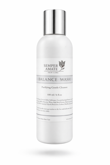 Balance Wash is a sulfate-free, oil-free daily cleanser formulated to remove impurities, makeup, and excess oil without stripping your skin's natural moisture barrier. Unlike harsher cleansers that leave skin feeling tight or squeaky-clean (a sign of barrier damage), Balance Wash uses gentle surfactants to cleanse thoroughly while keeping the skin's lipid layer intact.